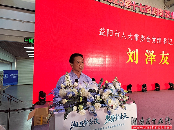 益阳市人大常委会党组书记、主任刘泽友在致辞中表示,安化黑茶作为益阳农业特色支柱产业,已经成为推动乡村振兴、助力农民增收致富的重要引擎。市委市政府将继续加大支持力度,推动安化黑茶产业高质量发展。