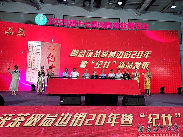 益阳茶厂总经理助理袁绪斌重点推介了2005年生产的"一品茯砖"。这款茶已经陈化20年,金花茂盛,菌香浓郁,汤色红亮,滋味醇和。专家评鉴认为,这款茶达到了品质的高峰期,是茯砖茶中的代表性产品。借此机会,益阳茶厂还隆重举行了破局边销20年暨湘益"纪廿"新品发布仪式。多位领导专家共同登台,在全场倒计时中启动推杆,金沙倾泻而下,象征着二十年沉淀的荣耀与力量,也开启了湘益茯茶新的征程。