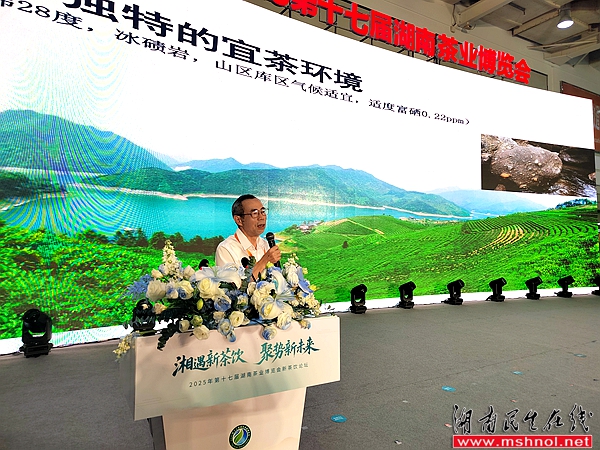 长沙海关原二级巡视员、湖南省茶业协会原副会长何文斌作为安化黑茶品牌推介官代表发言。他表示,将不遗余力地推广安化黑茶,让这一健康之饮香飘世界。