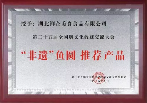 专家及嘉宾们的高度评价,如同一股强劲的东风,推动着澜都禧宴非遗鱼圆迈向更高的荣誉殿堂。经大会组委会研究决定,在这场备受瞩目的烟文化收藏交流大会颁奖仪式上,澜都禧宴非遗鱼圆被授予 “第二十五届全国烟文化收藏交流大会推荐产品” 的殊荣 。这一授牌,不仅是对鱼圆品质的高度认可,更是对鄂州非遗文化传承与创新的有力肯定 。