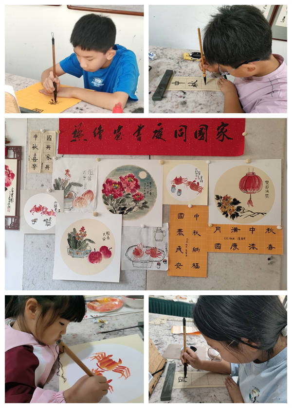 工作室何老师全程参与指导,用专业与温暖陪伴孩子们创作。张近东老师现场书写“双节同贺,福运绵长”,一幅笔力遒劲的书法作品不仅为活动增添了浓厚文化氛围,更让孩子们直观感受到传统书画的独特魅力。