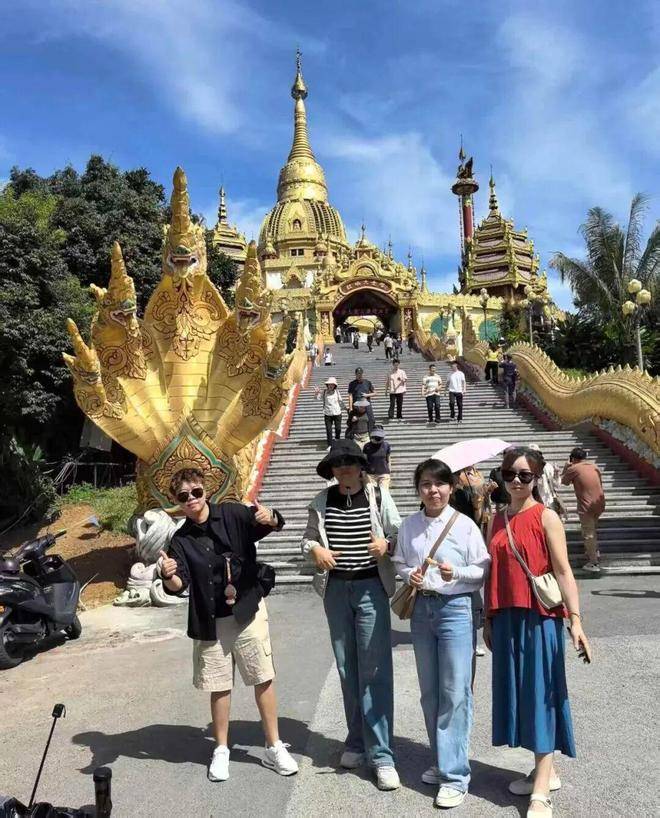 9月18日上午,我们游览勐焕大金塔。该塔坐落于雷牙让山之巅,于2007年5月1日竣工。登山顶可俯瞰芒市全貌,而大金塔堪称城市地标。勐焕大金塔不仅是亚洲最大的空心佛塔,更是亚洲规格最高之佛塔,饰有五龙之首,气象恢宏。建塔之时,中国佛教协会亲临主持开光大典,并恭植圣菩提树一株。此树苗乃斯里兰卡佛教界所赠,传为释迦牟尼悟道之母树后代,意义非凡。