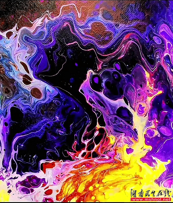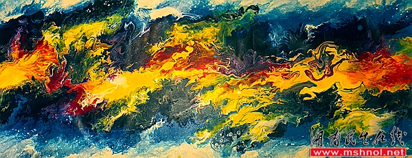 何仁诰独创的“超意识主义”艺术,打破传统绘画的疆界,将中国古典山水意境、儒释道哲思与西方现代性反思熔于一炉。其作品摒弃矫饰技巧,任色彩自然流淌,在清晰与模糊的视觉张力中,凸显东方美学的深邃神秘。青铜铭文与量子物理的碰撞、禅宗公案与人工智能的共生、泼墨技法与抽象表现主义的交融,既在多元材料的运用中构建画面灵魂,更以犀利的艺术语言叩问人类共同命题——从消费主义迷思到生态危机警示,从精神异化反思到文明裂痕弥合。此次展出的《叩问苍穹》系列,以写意宇宙的恢弘图境致敬人类探索精神;《超意识主义图腾》则通过强烈的情绪表达,成为映照全球问题的精神镜像,实现“雅者品其神,俗者赏其形”的艺术境界。